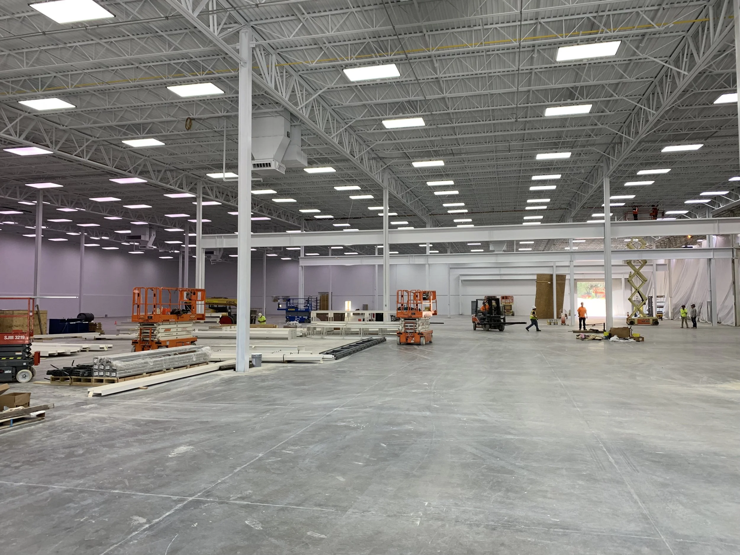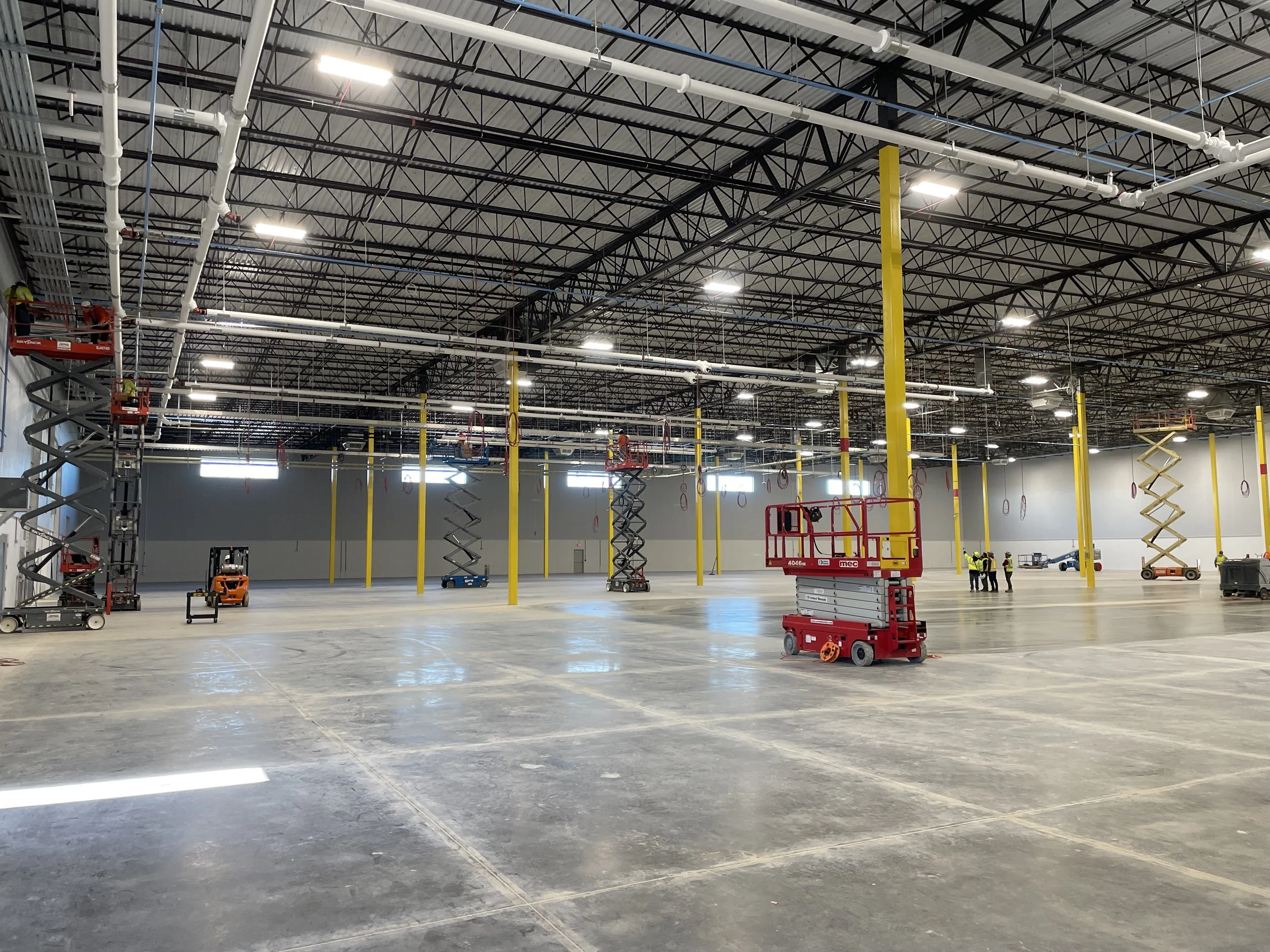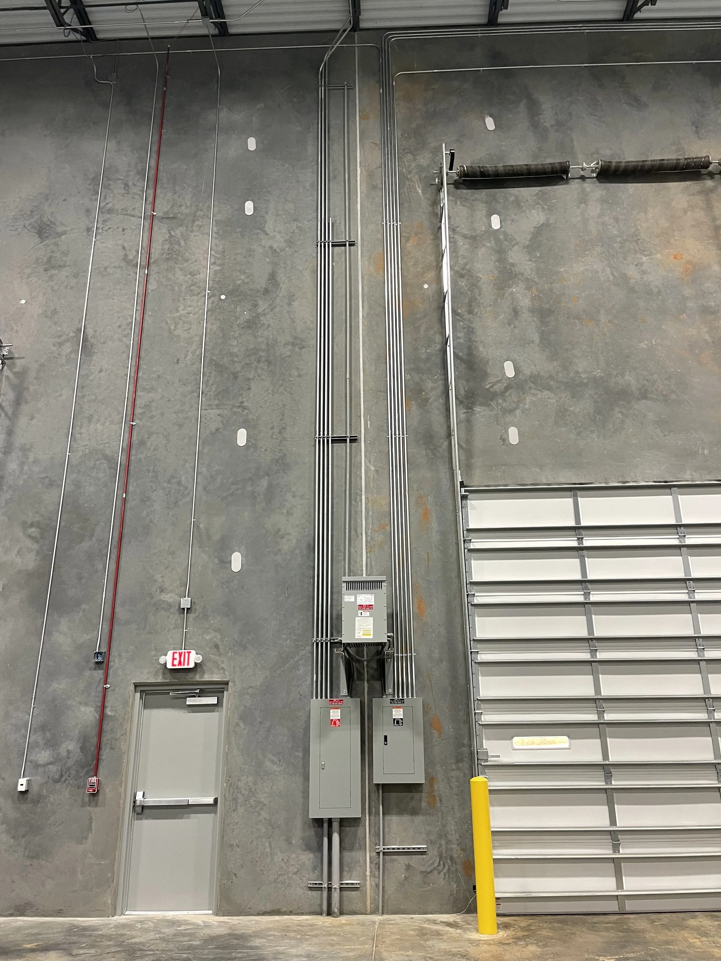 The design/build, building is served by 1200A of service and backed up by a 500KW generator. Over 400 Hi-Bay lights provide over 35FC of lighting on the distribution floor.