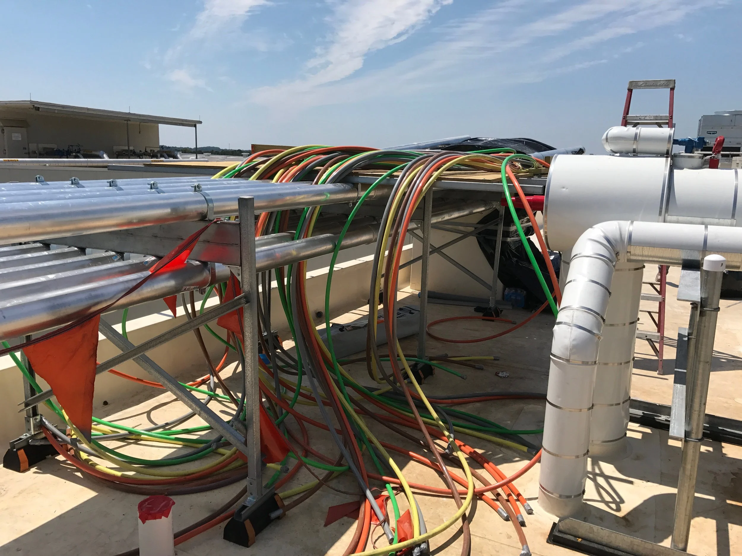 The base building power was tapped into during a weekend power outage to not interfere with the normal operations of the building.