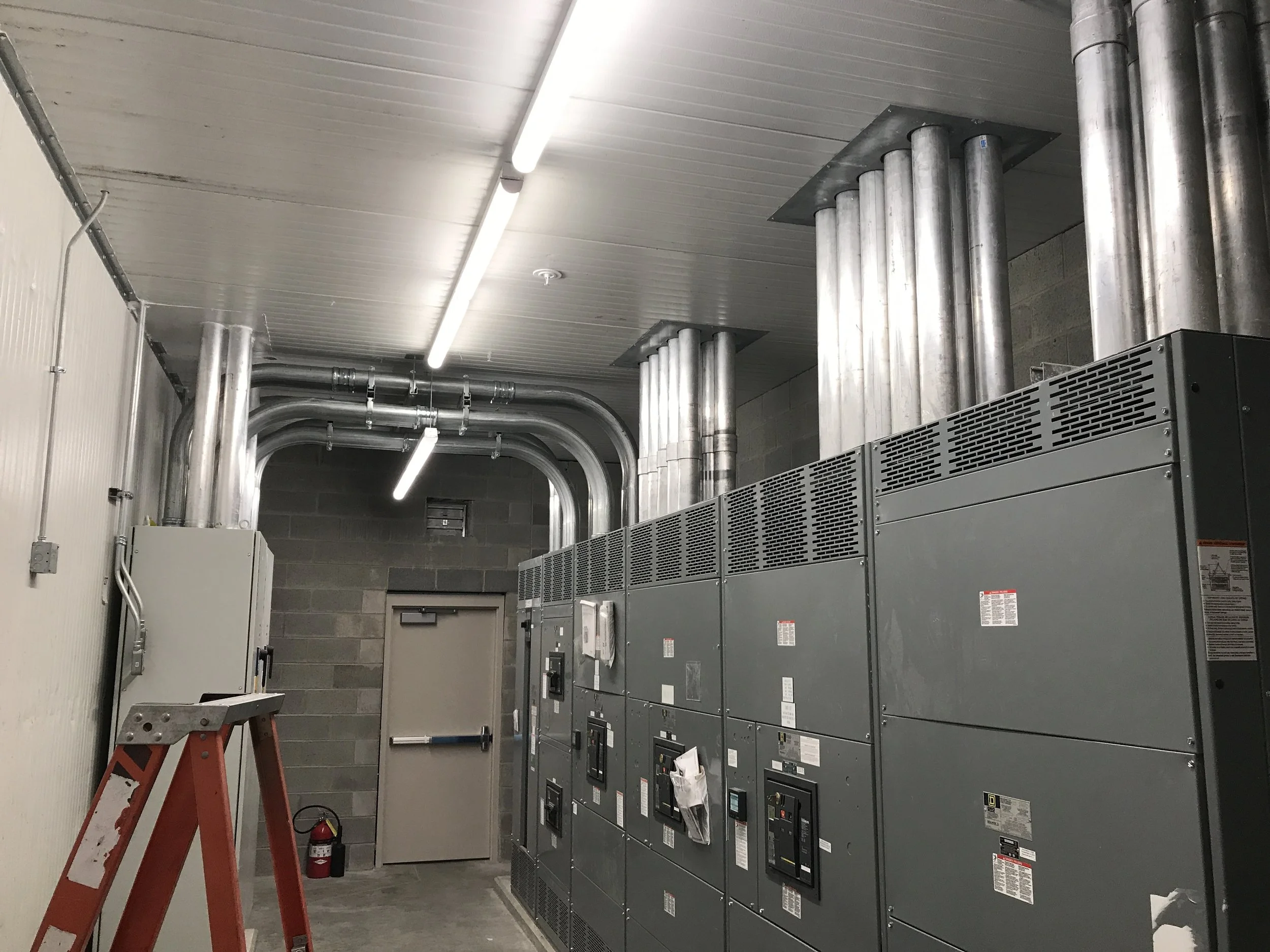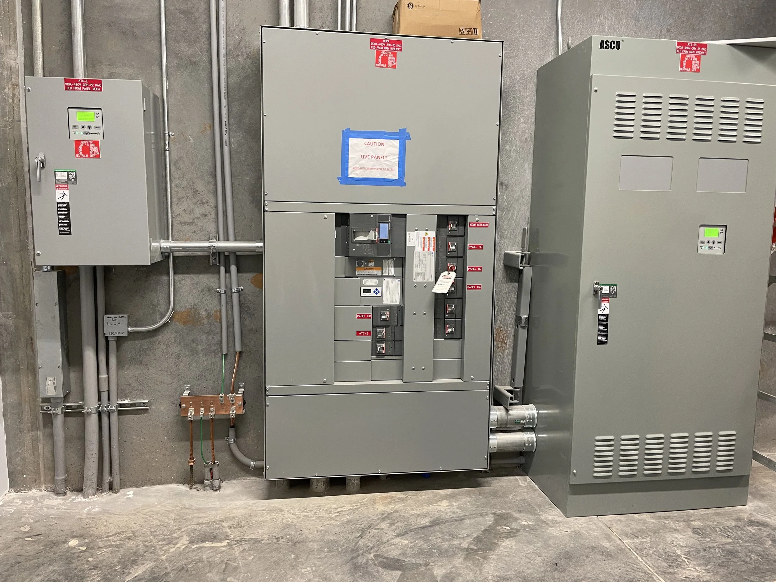 This facility is powered by a 3000A service and backed up with a 1MW generator. The system was distributed through the building utilizing a normal and emergency riser system, ensuring that all areas of the building were covered under the emergency backup of the generator.